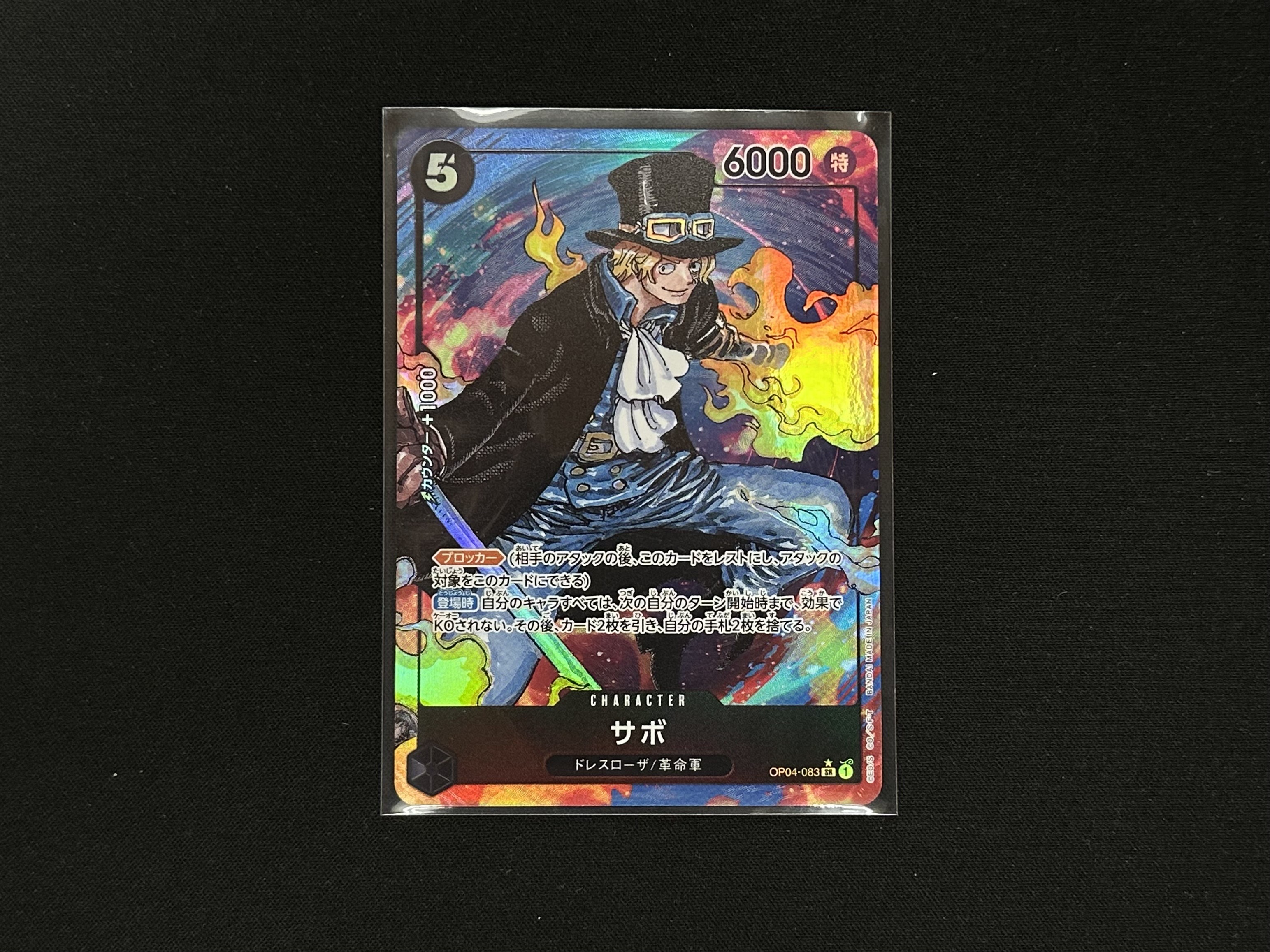 本日の買い取り商品は、ワンピースカードゲーム OP04-083[SR]:サボとなります。