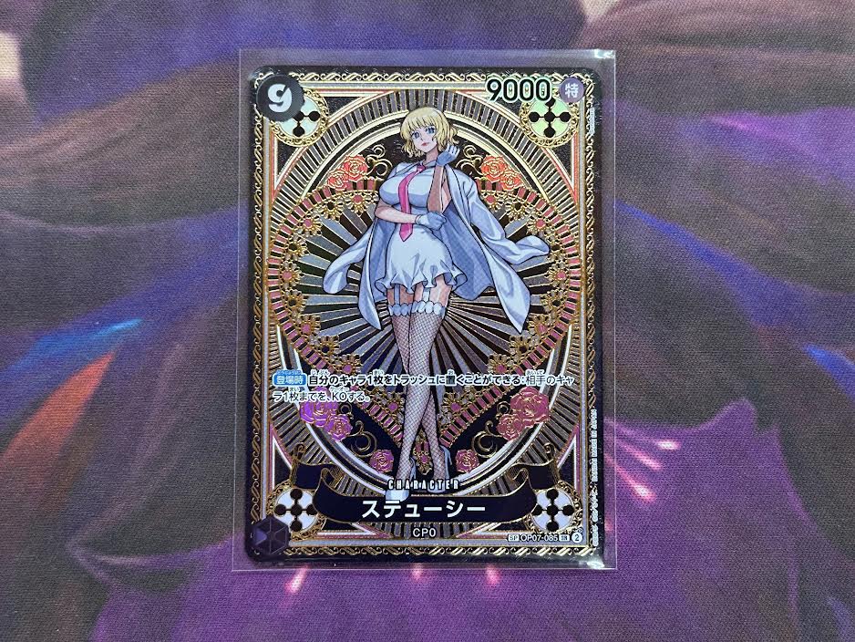 本日の買い取り商品は、ワンピースカードゲーム OP07-085[SR]:ステューシー[SP]となります。