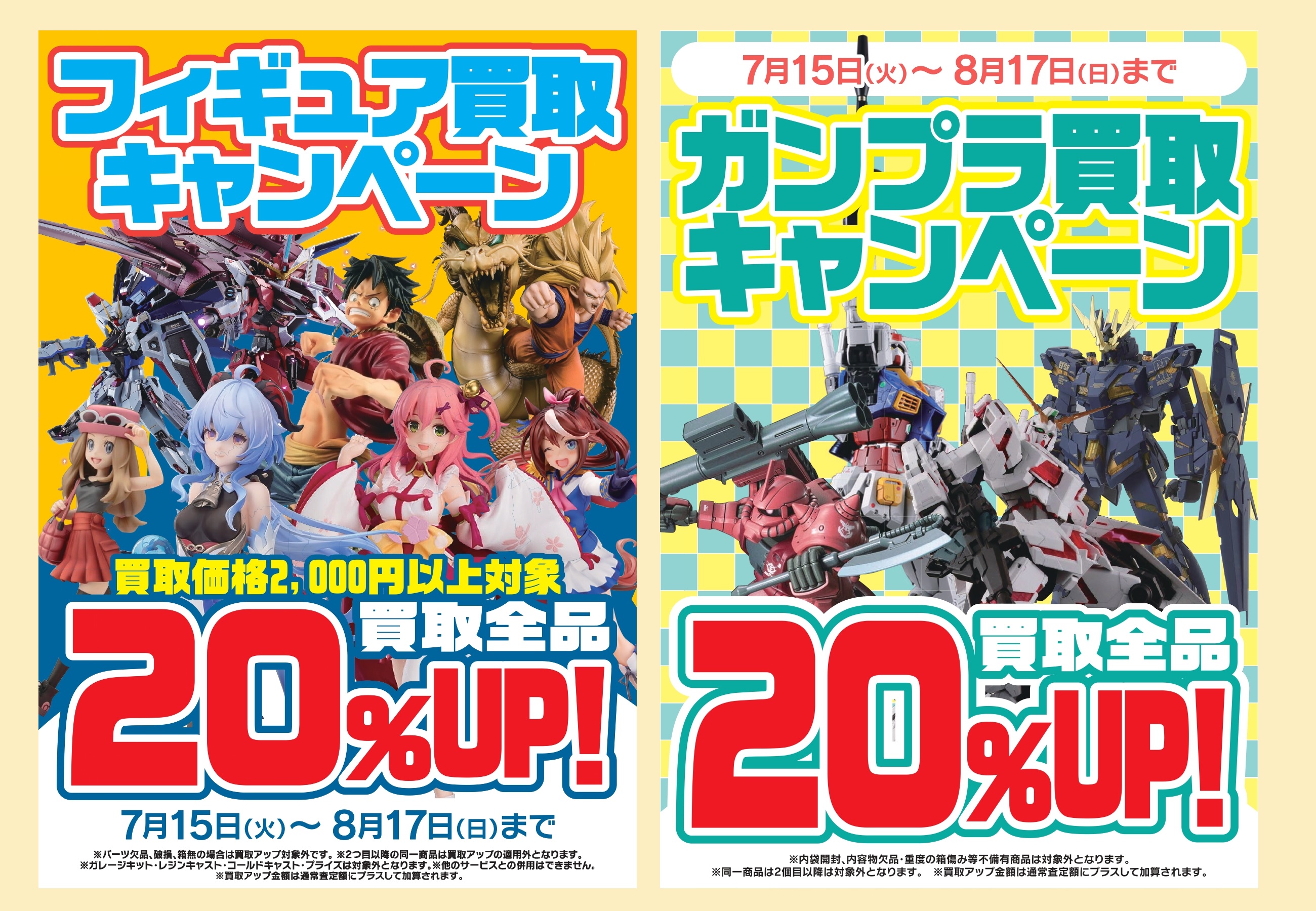 7/15~8/17の期間中、桃太郎王国所沢店では【ガンプラ・フィギュア】の買取20%UPキャンペーンを開催します😊